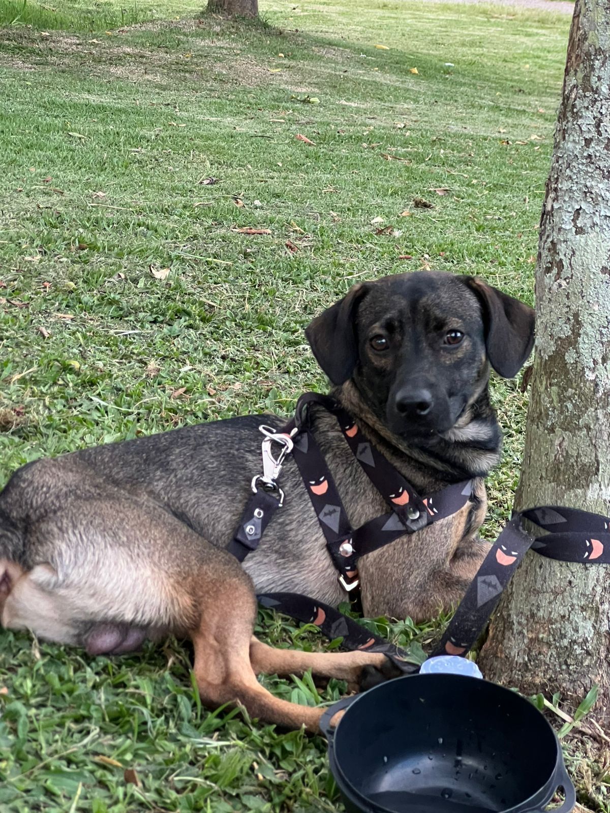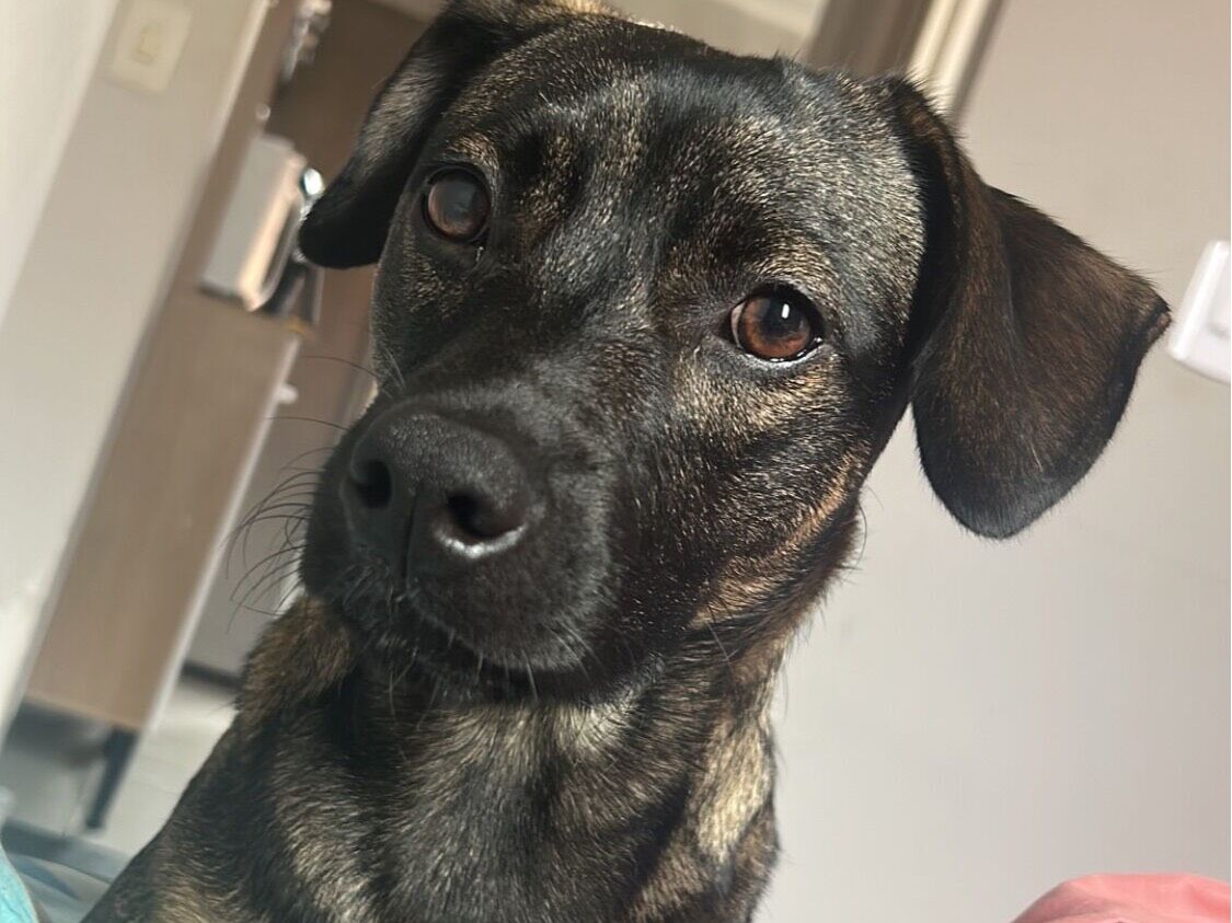 Cachorro médio, 1 ano, SRD-ViraLata, cor Preta/Marrom.