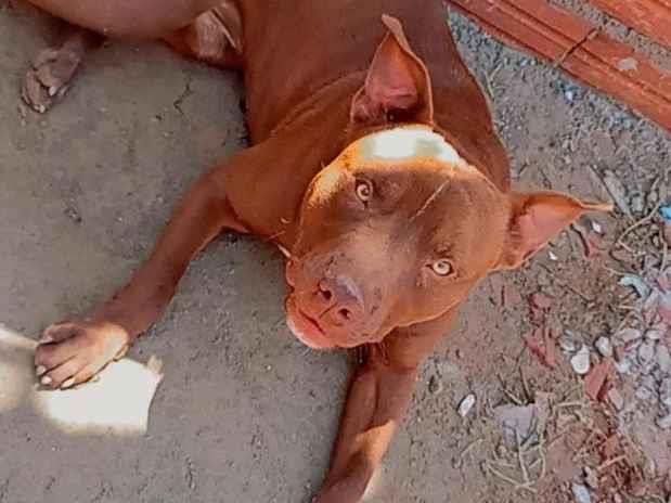 Cachorro médio, 1 ano, Pit-Bull, cor Marrom.