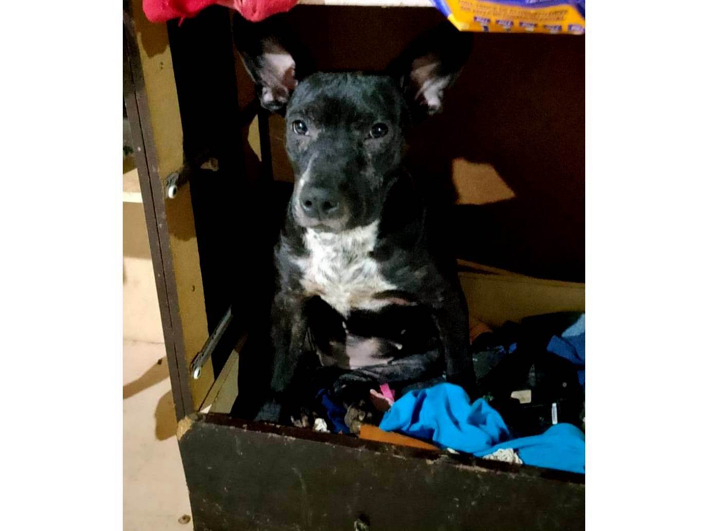 Cachorro médio, 2 a 6 meses, Pit-Bull, cor Preta.