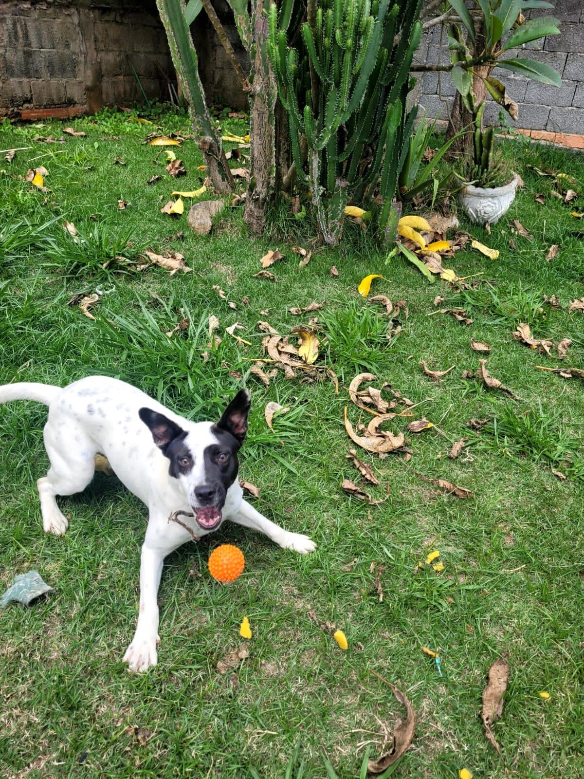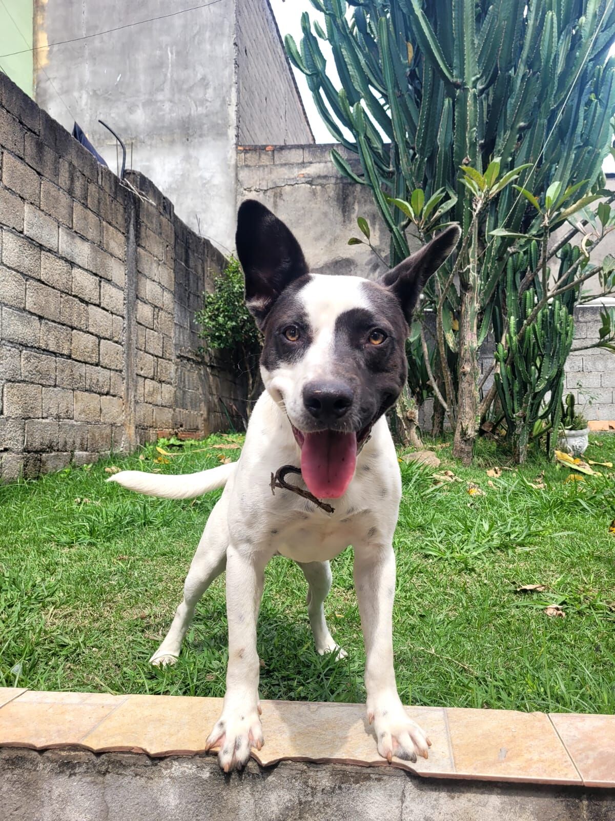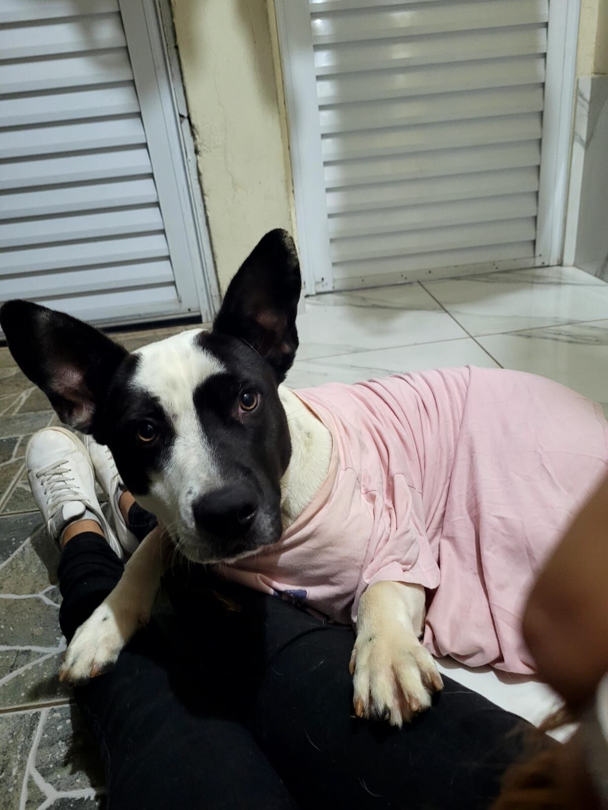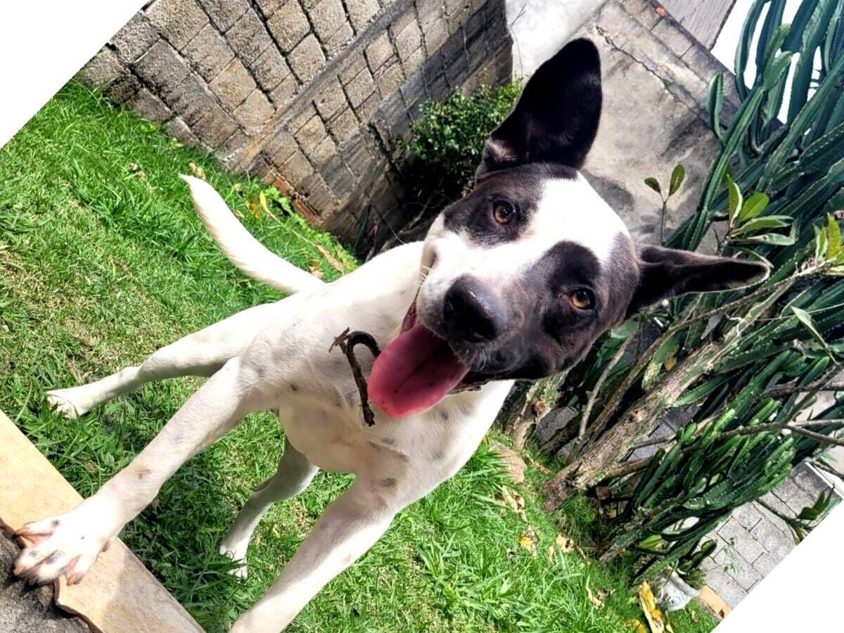 Cachorro grande, 7 a 11 meses, SRD-ViraLata, cor Branca/Preta.